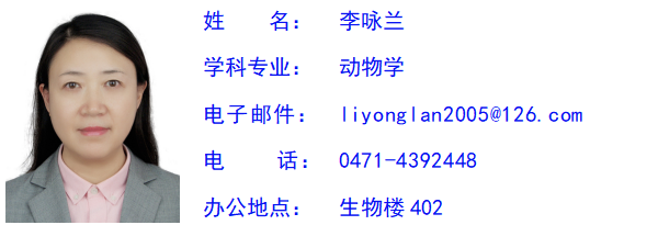 李咏兰,女,汉族,博士,教授。专业型、学术型研究生导师,博士生导师,蒙古国国立教育大学博士生导师。现任教于太阳成集团tyc33455。现任中国解剖学会人类学分会副主任,内蒙古解剖学会副理事长,《人类学学报》《解剖学报》编委。主讲“人体及动物生理学”(自治区精品课程负责人)、“高级动物生理学”、“人体组成学”、“生理学研究进展”等课程。主要从事民族学与人类生物学交叉学科研究,采用宏观体质人类学与微观分子遗传学、人类生物学与文化人类学研究相结合的方法,对分布在不同生态环境的各民族进行人类生物学研究。主持完成国家自然科学基金项目3项、科技部基础性工作专项1项,内蒙古自然科学基金项目2项。承担完成国家自然科学基金重点项目1项、国家自然科学基金项目5项、内蒙自然科学基金项目6项。目前正在主持国家重点研发计划战略性科技创新合作项目“人类表型组测量技术及表型数据跨尺度关联合作研究”(2020YFE0201600,167万,2020.6-2024.12)、国家自然科学基金面上项目“基于人体测量与田野调查的西北民族走廊16个族群人体组成成分的研究”(32071183,58万,2021.1-2024.12)。发表学术论文110余篇,其中SCI收录15篇,EI收录5篇。出版学术专著3部。多次获得太阳成集团官方网站优秀硕士生导师称号,指导的本科生、研究生多人获得校级或自治区优秀学位论文。
