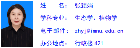 张颖娟,女,汉族,1970年生,呼和浩特人,理学博士,太阳成集团tyc33455教授,硕士生导师。主要研究领域为植物生态学,恢复生态学,学科教学(生物)等。主持国家自然科学基金项目1项、省部级科研项目10余项。发表研究论文30余篇,出版学术著作3部。