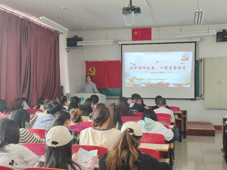 首先研究生党支部书记穆文静老师向同学们介绍了研究生党支部的基本情况。穆老师从加强理论学习,树立正确的世界观、人生观、价值观,通过实践不断端正⼊党动机三个方面分析了如何端正入党动机。要求同学们首先要抓好专业课的学习,创建优良学风,打造优异成绩。其次是抓工作态度和能力,同学们要在各自的研究室内发挥骨干作用,热心公司组织的各项活动,积极投身社会实践,勇于为同学、为老师、为他人服务。希望同学们“未进党的门,先做党的人”,严格按照一名党员的标准要求自己,争取早日加入中国共产党。