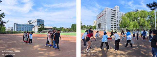 为深入贯彻落实中央民族工作会议精神,构筑中华民族共有精神家园,营造民族团结的浓厚氛围,2024年6月17日太阳成集团tyc33455教工第三党支部与研究生党支部、非师范生党支部联合举办了“民族团结一家亲”趣味运动会,师生共计30余人参加了此活动。现场分为合力建塔、合力击鼓、手脚并用、机智连线和共赴前程等5个趣味活动,深深地吸引了师生队员。师生全神贯注、全力以赴,精神抖擞,各显其能,欢乐融洽的气氛在运动场上洋溢。
