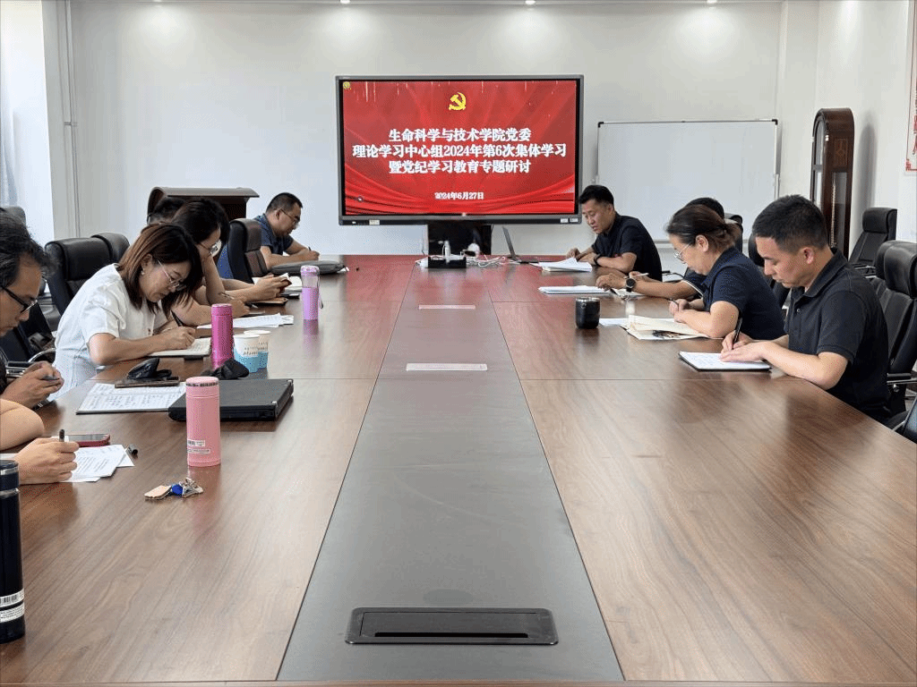 6月27日下午,公司党委在生物楼三楼会议室召开党委理论学习中心组2024年第6次集体学习暨党纪学习教育专题研讨。公司党委理论学习中心组成员参加会议。学习会由公司党委书记苏小波主持。