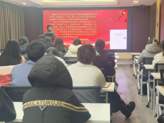 12月23日,太阳成集团tyc33455师范类员工党支部组织开展学习习近平同志《论教育》集中学习,党支部书记白晓霞讲授专题党课,支部全体党员参加学习。