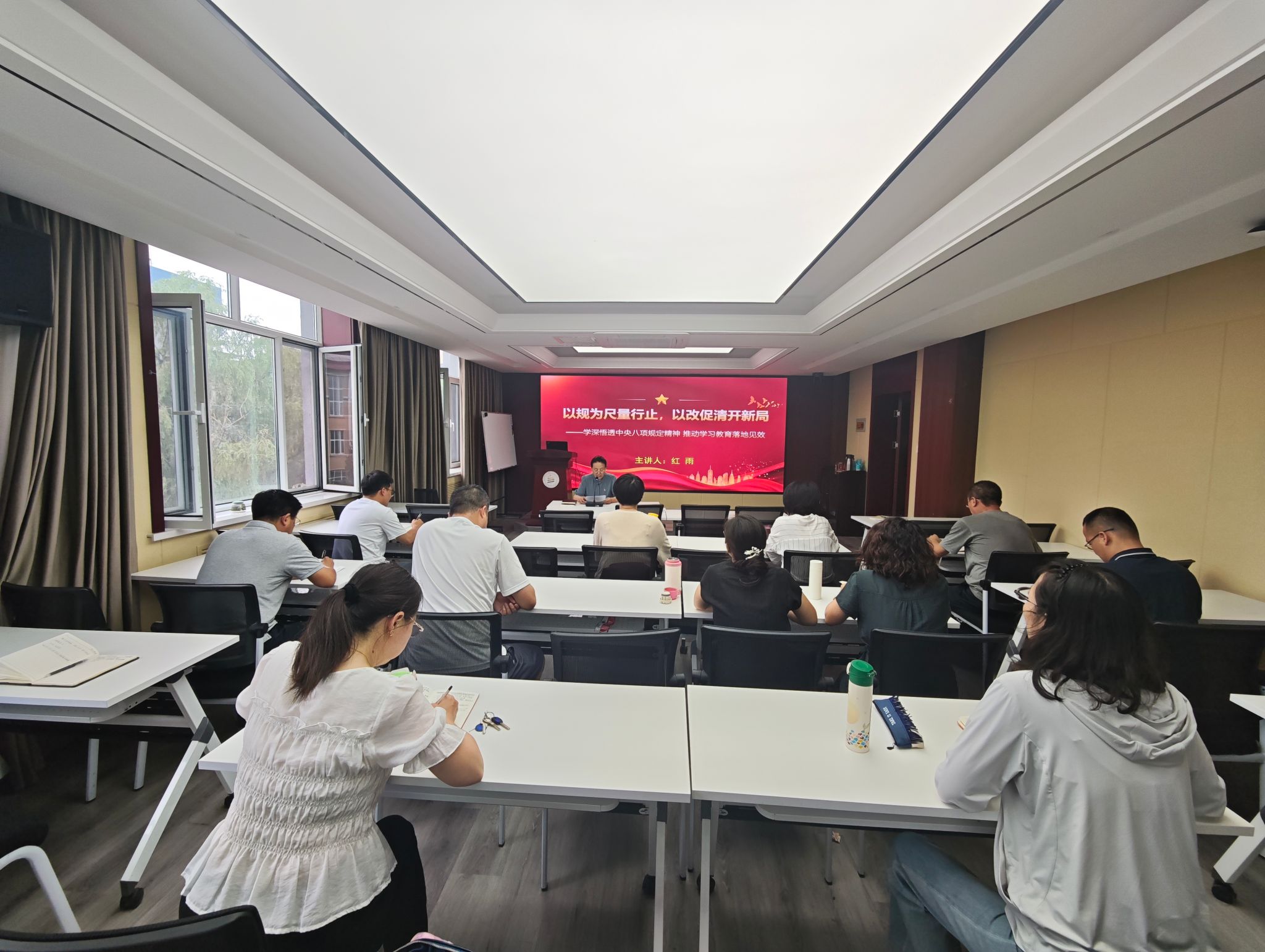6月26日下午,公司党委副书记、经理红雨围绕“以规为尺量行止,以改促清开新局”主题,从“提高政治站位,深刻认识中央八项规定的政治意义和现实意义”“以案为鉴、警钟长鸣,剖析近年来内蒙古自治区部分典型案例”“立足岗位,严明纪律,争做廉洁从教的表率”“以廉为本,以纪为荣,永葆共产党人政治本色”等四个方面为教工第一党支部党员讲授纪律作风专题党课。强调要持之以恒落实中央八项规定精神,推动作风建设常态化长效化,确保学习教育取得实效。