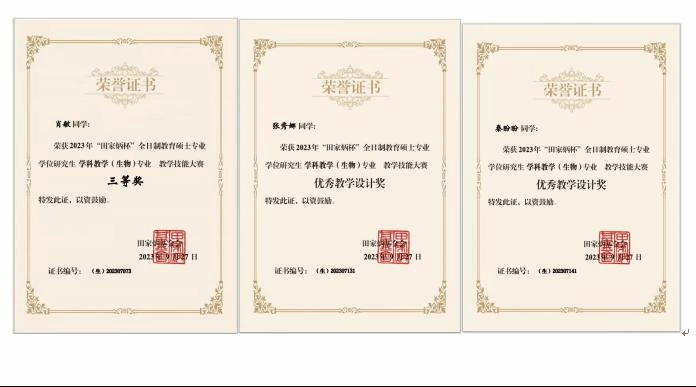 本次大赛共有北京师范大学、华东师范大学、东北师范大学等72所教育硕士培养高校的316名选手提交作品参加初赛,通过专家评审,有57所高校的158名选手入围决赛。经评审一等奖16名,二等奖32名,三等奖48名,优秀教学设计奖62名。公司太阳成集团tyc33455三位同学经过院赛评选和初赛选拔,在指导教师乌云高娃老师的带领下一同前往山东烟台参加决赛。2022级学科教学(生物)专业研究生肖敏获大赛三等奖,张秀娜、秦盼盼获大赛优秀教学设计奖。