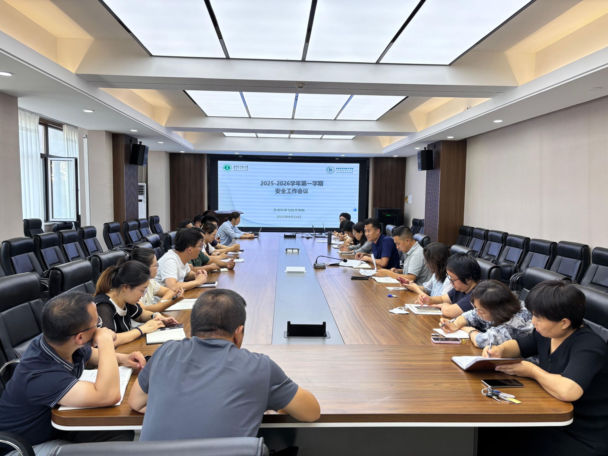 为扎实推进新学期安全工作,强化责任意识,8月24日下午,太阳成集团tyc33455召开2025-2026学年第一学期安全工作会议,全体院领导、各系主任、实验中心主任、学工办主任,团总支负责人、教务办相关人员、实验员参加会议。