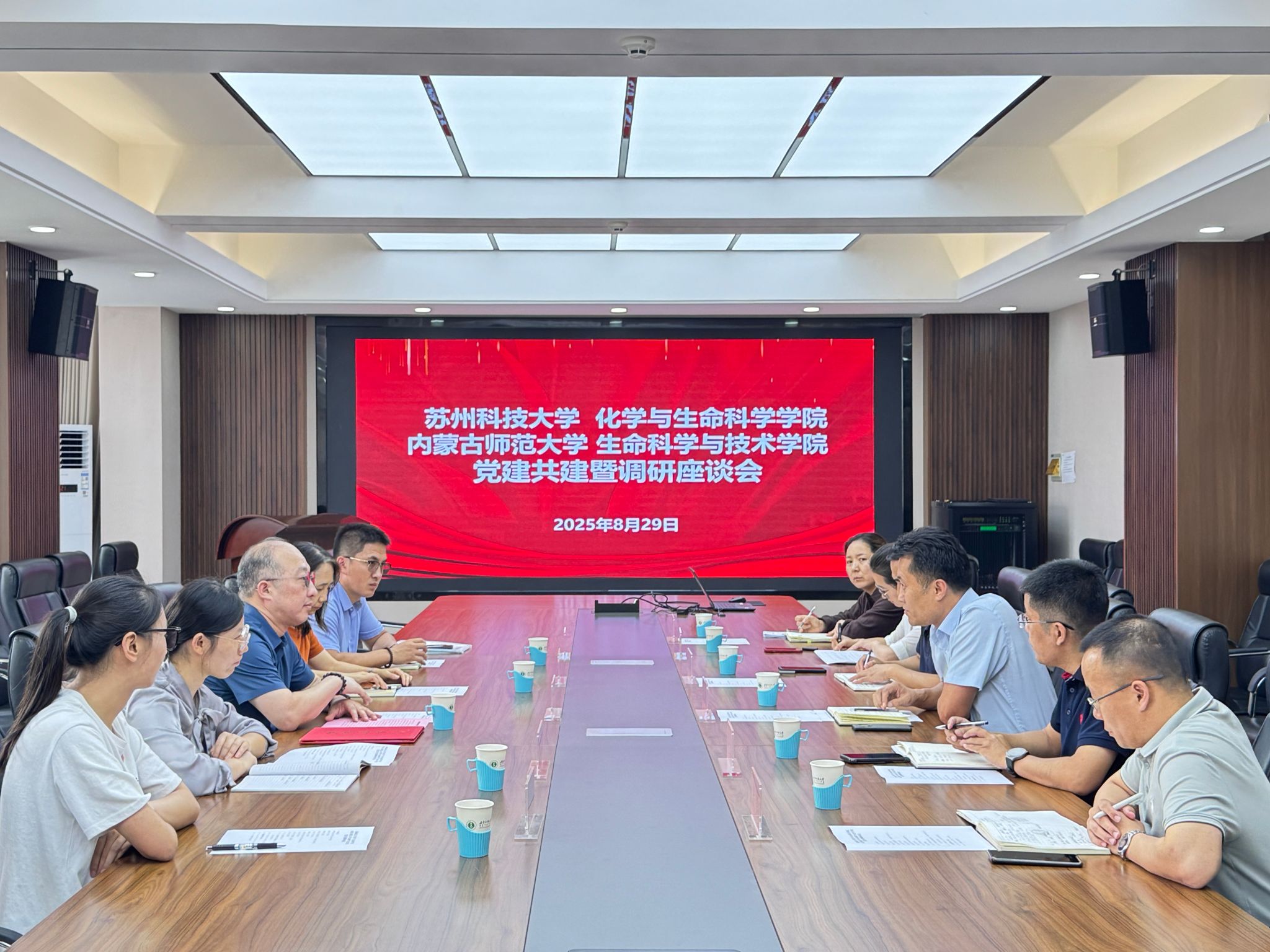 8月29日下午,苏州科技大学化学与生命科学公司党委书记徐治初一行来公司开展党建共建调研,公司领导班子、相关党支部、系部负责人参加调研座谈会。座谈会由苏小波主持。